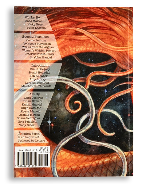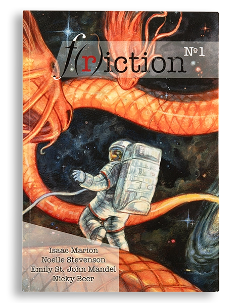There’s no way we could have known when we sent this first issue to the printers that our readership would ignite, that we’d be shimmering on Barnes & Noble newsstands, that our contests would attract thousands of participants. And, real talk—does F(r)iction have the most adorable baby photos or what? Our very first issue features an interview with Emily St. John Mandel and an excerpt of her exquisite, tenderly-human speculative fiction debut Station Eleven, as well as an excerpt of Noelle Stevenson’s award-winning, sharply subversive fantasy comic “Nimona.” With short fiction by Isaac Marion and poetry by Nicky Beer and the Afghan Women’s Writing Project, F(r)iction #1 burns at its core with the wild imaginings and bold candor that characterize our magazine to this day.