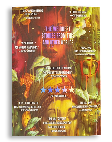 F(r)iction #15 is a sneaky geode of strange literature, asking only that the stories within crack open and hold their glittering halves to the light.