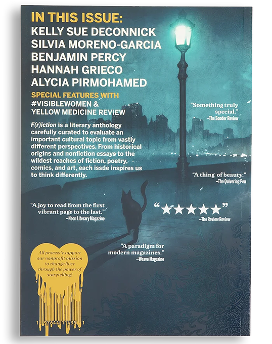 And there’s something truly special about this issue’s contributors, too! Through our partnership with Kelly Sue DeConnick and #VisibleWomen, we’ve focused on bringing in artists of color, people with disabilities, LGBTQ+ authors, and many other “unseen” creators. The 21st issue of F(r)iction overflows with perspectives that we don’t see enough in publishing, making them impossible to ignore.
