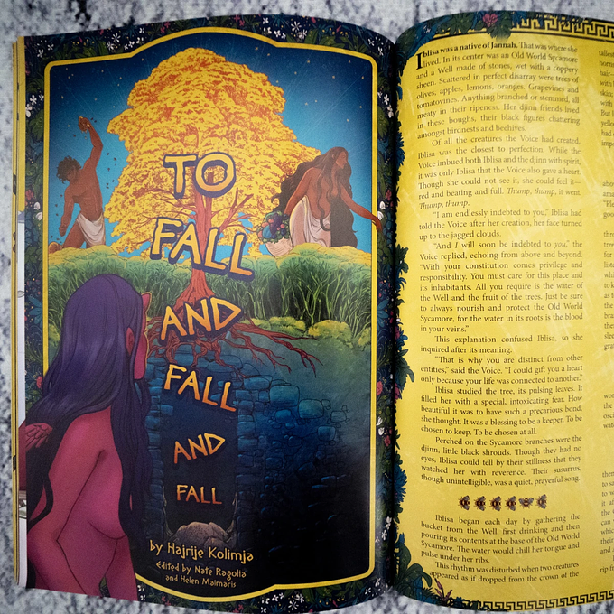- To Fall and Fall and Fall, words by Hajrije Kolimja, art by Kayla Rader
