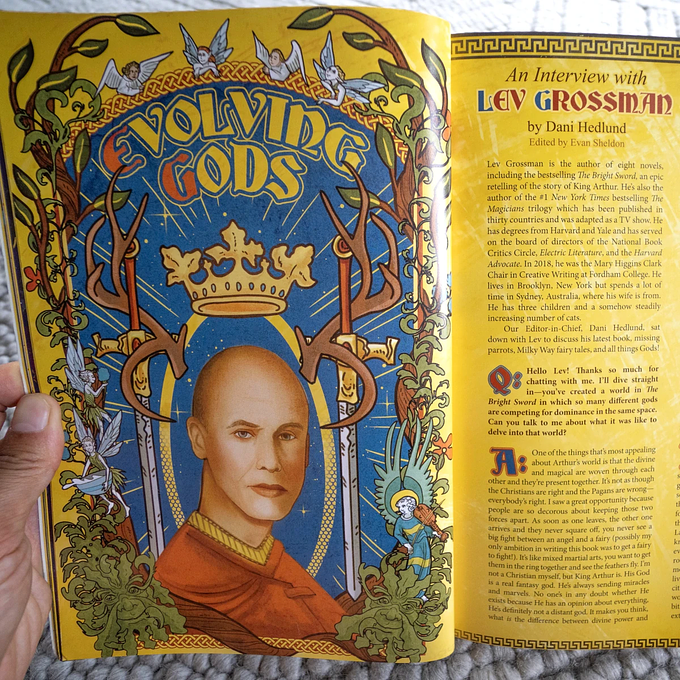 - Evolving Gods, words by Lev Grossman, interview by Dani Hedlund, art by Hailey Renee Brown