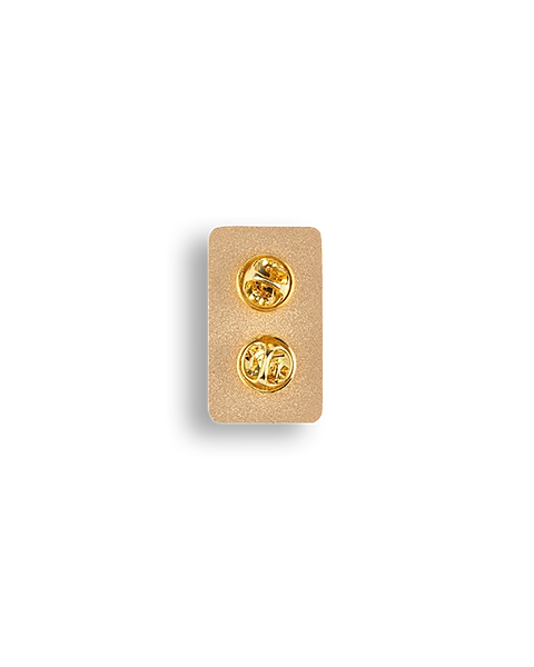 | Contents | Gold-coloured zinc-alloy metal, coloured stoving varnish inlays, two metal butterfly clutch clasps on back, posts aligned vertically |