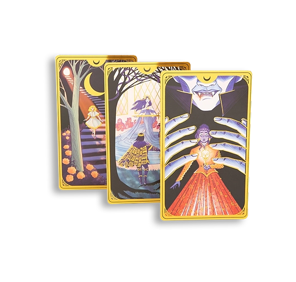 Each set includes three (3) postcards measuring 3.5″ x 6″ / 9cm x 15.25cm and features the artwork for The Moon (Alice’s Adventures in Wonderland), The World (King Arthur), and Death (Bram Stoker’s Dracula).